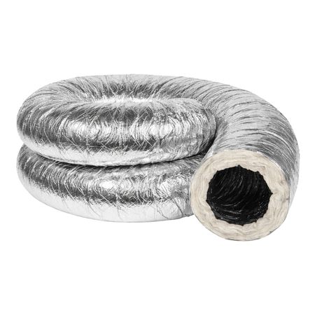 The 7"-inch R6 insulated flexible air duct (25' ft length) is engineered to deliver reliable airflow while reducing energy loss in HVAC systems. Its R6 insulation helps maintain consistent air temperatures, improving overall system efficiency.