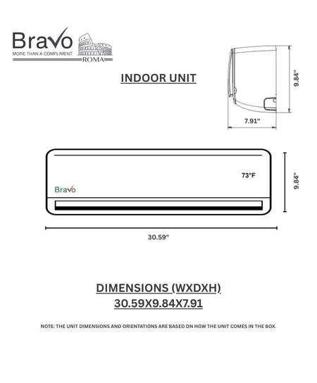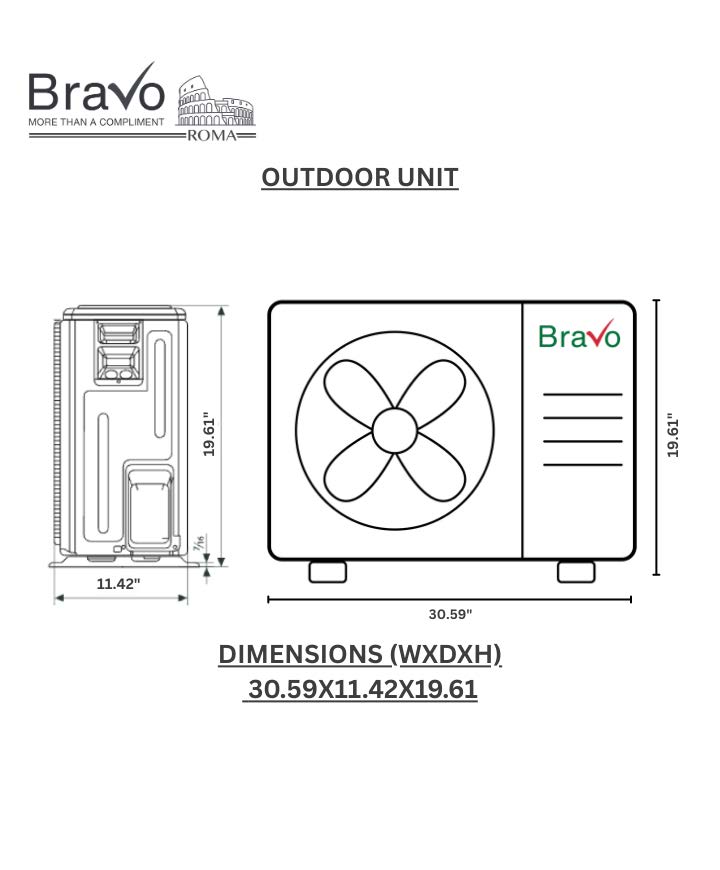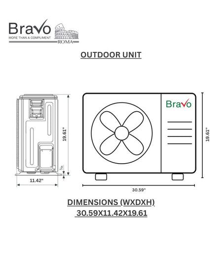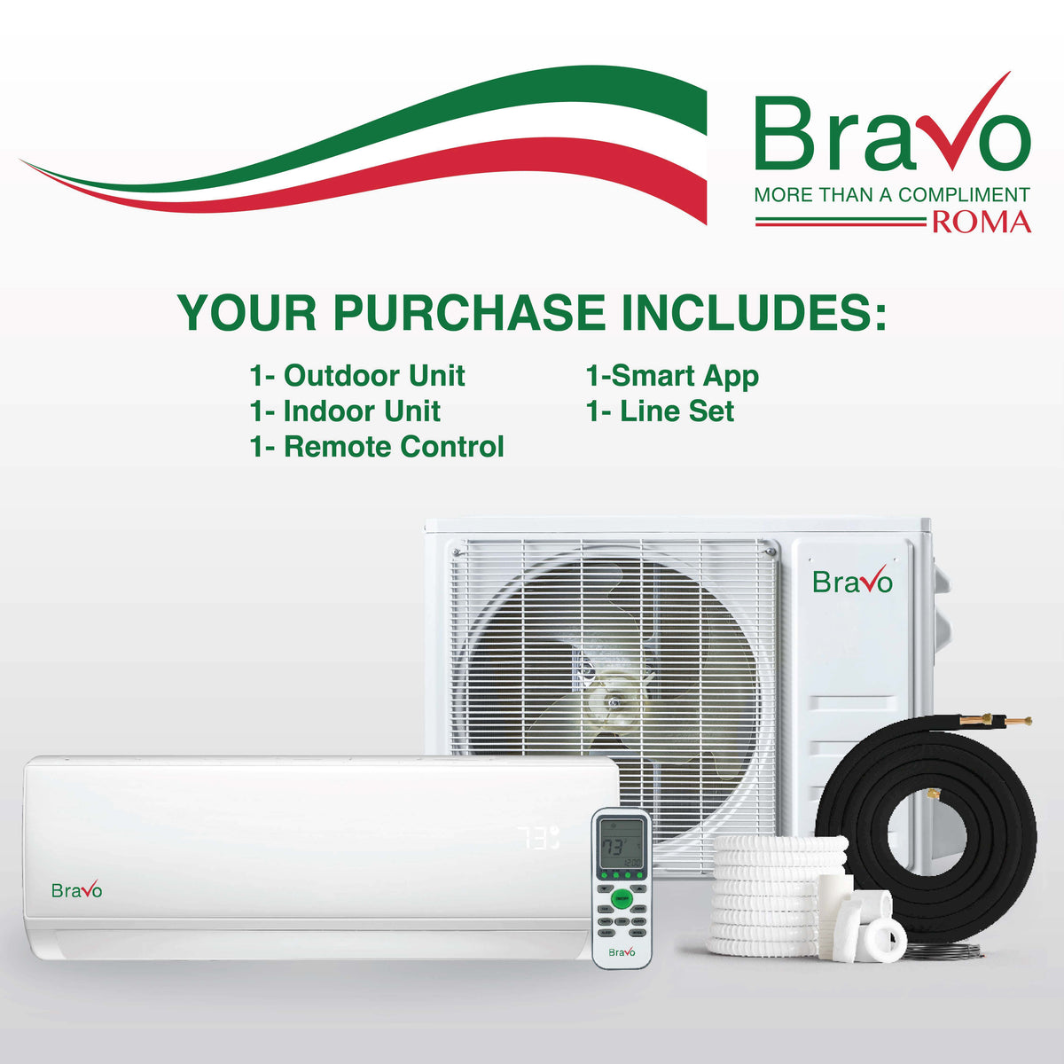 Bravo Roma 12,000 BTU 1-Ton Ductless Mini Split Air Conditioner Heat Pump System 208-230V/1PH
