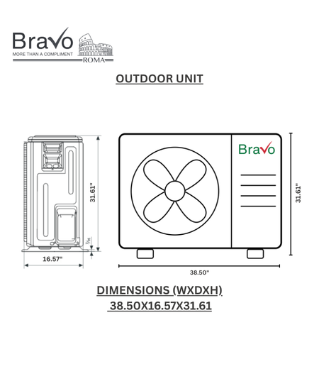 Stay comfortable year-round with the Bravo Roma 36,000 BTU (3 Ton) ductless mini split air conditioner and heat pump system. Designed for spaces up to 1,500–2,200 sq. ft., this high-performance unit delivers both cooling and heating in one sleek, compact design. Operating on 208/230V power, it’s perfect for residential and light commercial installations.